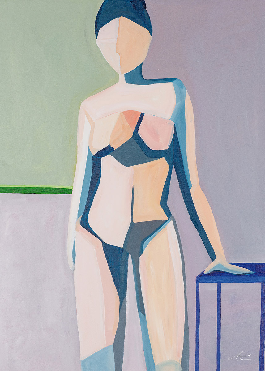 Værkernes motiver er skabt ud fra en dyb kærlighed og fascination af det multifacetteret menneske, hvor skønhed kommer indefra. I hvert værk møder vi derfor et menneske, som i harmoni med sine omgivelser undersøger, hvem de er og deres indre skønhed. Værkernes harmoniske farver tilfører en lethed og balance til indretningen - og indbyder samtidig til refleksion og fordybelse.